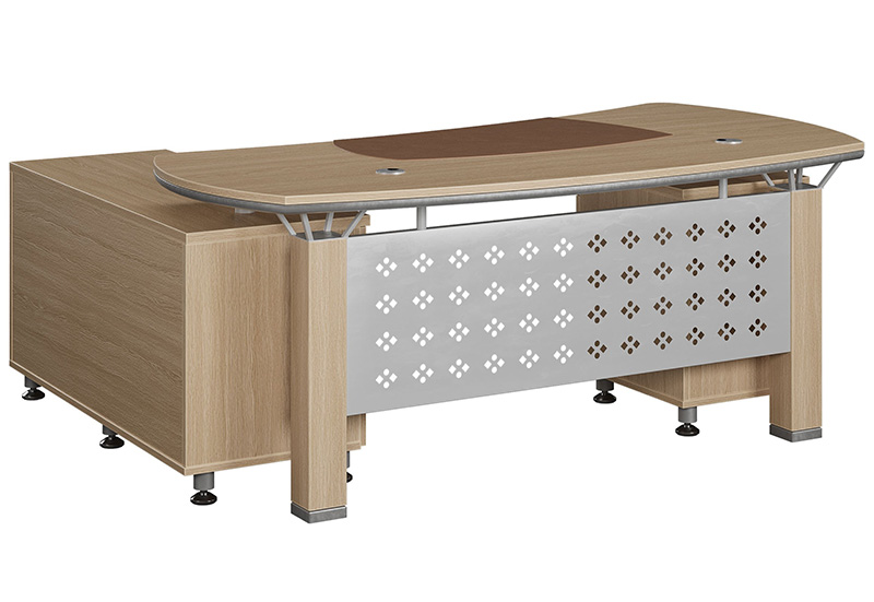 - Bàn chất liệu Kim loại: Kim loại mang đến vẻ đẹp hiện đại, cá tính và mạnh mẽ. Kim loại có độ bền cao, khả năng chịu lực tốt, nhưng có thể bị gỉ sét nếu không được bảo quản đúng cách. Bàn trưởng phòng chân sắt kết hợp mặt bàn gỗ công nghiệp thiết kế hiện đại, thanh thoát, chắc chắn.