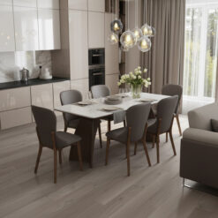Nếu bạn đang tìm kiếm một mẫu bàn ăn cao cấp để nâng tầm không gian phòng bếp, bàn ăn nhập khẩu BA515 sẽ là lựa chọn đáng cân nhắc. Sản phẩm gây ấn tượng với mặt đá nhân tạo vân núi sáng tinh tế, phía dưới được ốp mặt gỗ sang trọng, kết hợp cùng chân gỗ tự nhiên sơn hoàn thiện vân gỗ đẹp mắt. Khi phối cùng ghế ăn GA514, bộ sản phẩm tạo nên tổng thể hài hòa, hoàn hảo cho những bữa cơm gia đình ấm cúng hay các buổi họp mặt thân mật cùng bạn bè.