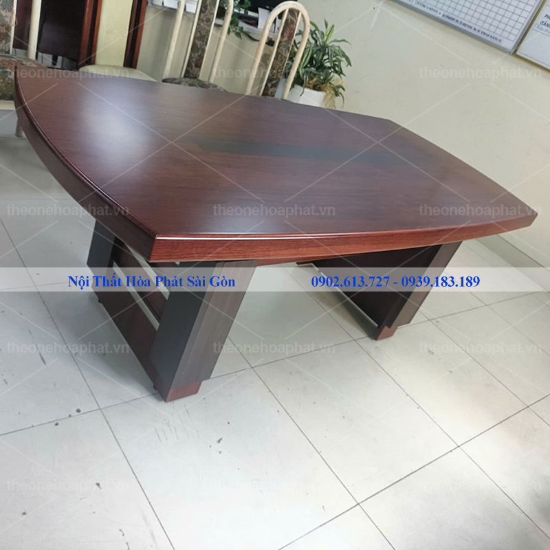 Bàn họp CT2010H5 măt bàn uốn cong hai đầu bàn, chất liệu gỗ công nghiệp sơn Pu, chân bàn được ghép hộp trang trí.