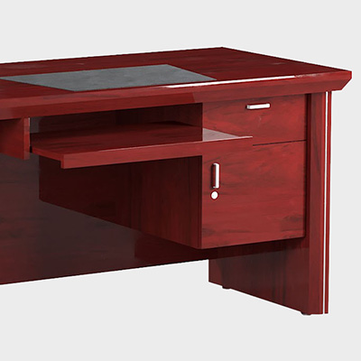 Bàn trưởng phòng cấp trung ET1400G mặt hình chữ nhật chất liệu gỗ công nghiệp sơn PU. Bàn có bàn phím, hộc treo 1 ngăn kéo, 1 cánh mở và bàn phím.