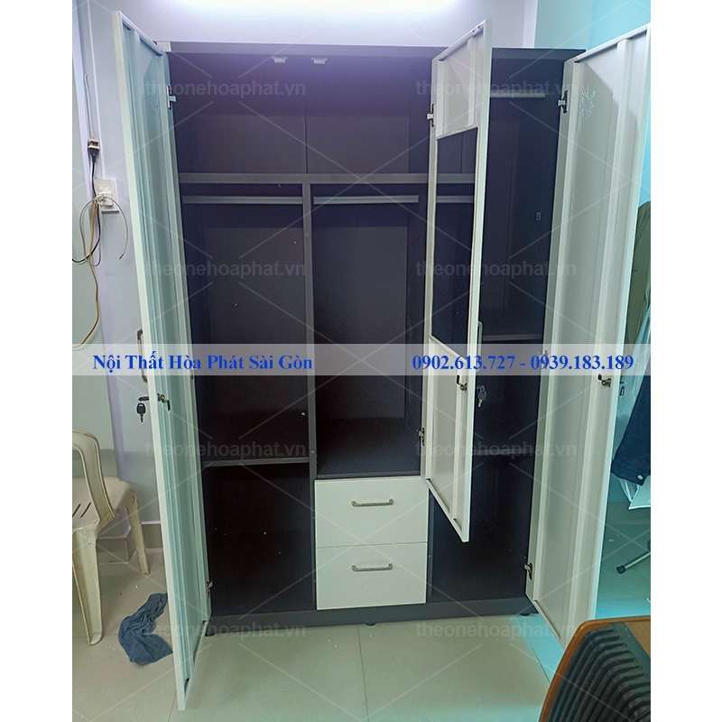 Tủ sắt quần áo sơn tĩnh điện TU20B2C3 là loại tủ sắt 3 cánh mở, 2 ngăn kéo được nhiều gia đình lựa chọn sử dụng bởi thiết kế hiện đại, tiện dụng và giá thành hợp lý.