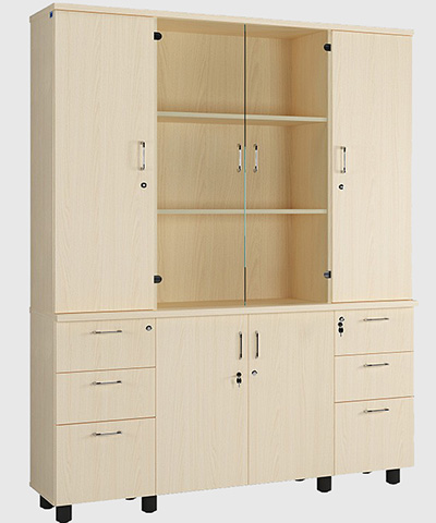 | Kiểu dáng: | 4 khoang, khoang trên có 2 cánh kính giữa để tài liệu, hai bên cánh đặc, khoang dưới giữa 2 cánh mở, 2 bên có ngăn kéo |
