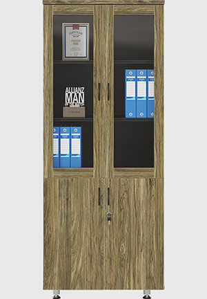 - Phần trên của tủ được chia thành ba khoang, được phủ bằng cánh kính trong suốt, tạo ra không gian hiển thị tài liệu và đồ trang trí một cách trang nhã và chuyên nghiệp. Cánh kính giúp bảo vệ tài liệu khỏi bụi bẩn và mặt kính cũng tạo cảm giác mở rộng không gian. Điều này không chỉ giúp cho việc tìm kiếm tài liệu trở nên dễ dàng mà còn tạo điểm nhấn thẩm mỹ cho không gian văn phòng.