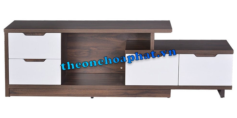 - Kệ ti vi gỗ công nghiệp Melamine cao cấp vân óc chó và có 04 ngăn kéo để đồ.